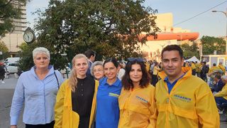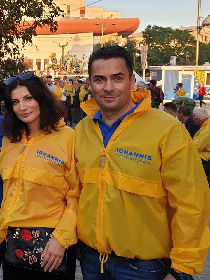 Alături de membrii PNL, partidul care îl susţine pe Iohannis, Ginghină a îmbrăcat o geacă galbenă pe care era imprimat mesajul „Iohannis Preşedintele meu”. Cei prezenţi au vorbit cu trecătorii şi i-au îndemnat să voteze cu Iohannis.