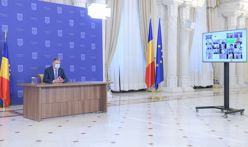 Klaus Iohannis a participat marți, 8 decembrie, la o întrevedere, în format de videoconferință, cu ambasadorii statelor membre ale Uniunii Europene acreditați la București, cu prilejul reuniunii tradiționale semestriale organizate de statul membru care deține Președinția Consiliului Uniunii