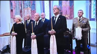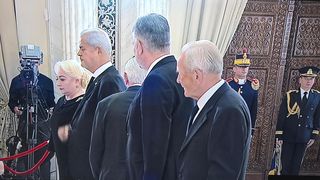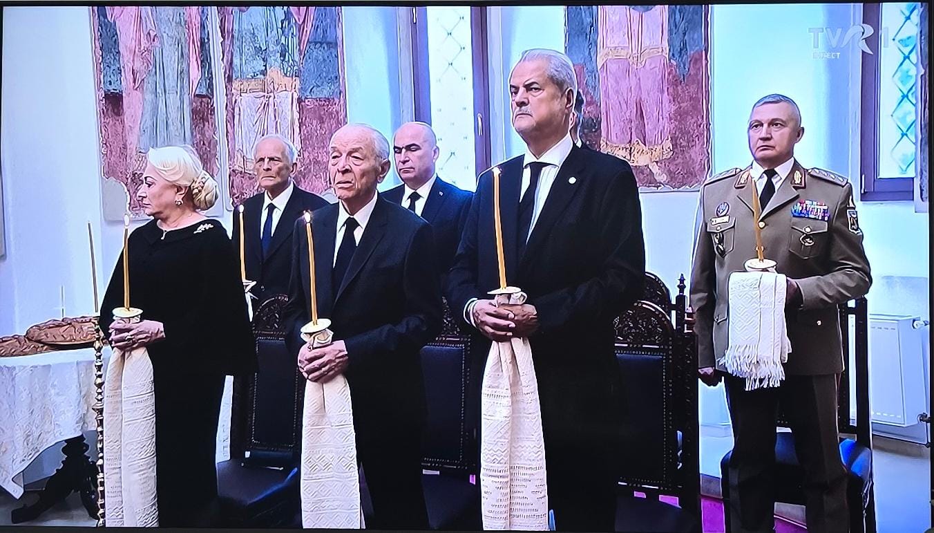 Sicriul fostului președinte a ajuns în Biserica Palatului Cotroceni. Aici are loc slujba religioasă de înmormântare, la care participă, printre alții, Ilie Bolojan, Viorica Dăncilă, Adrian Năstase, Marcel Ciolacu și fostul președinte Emil Constantinescu.
