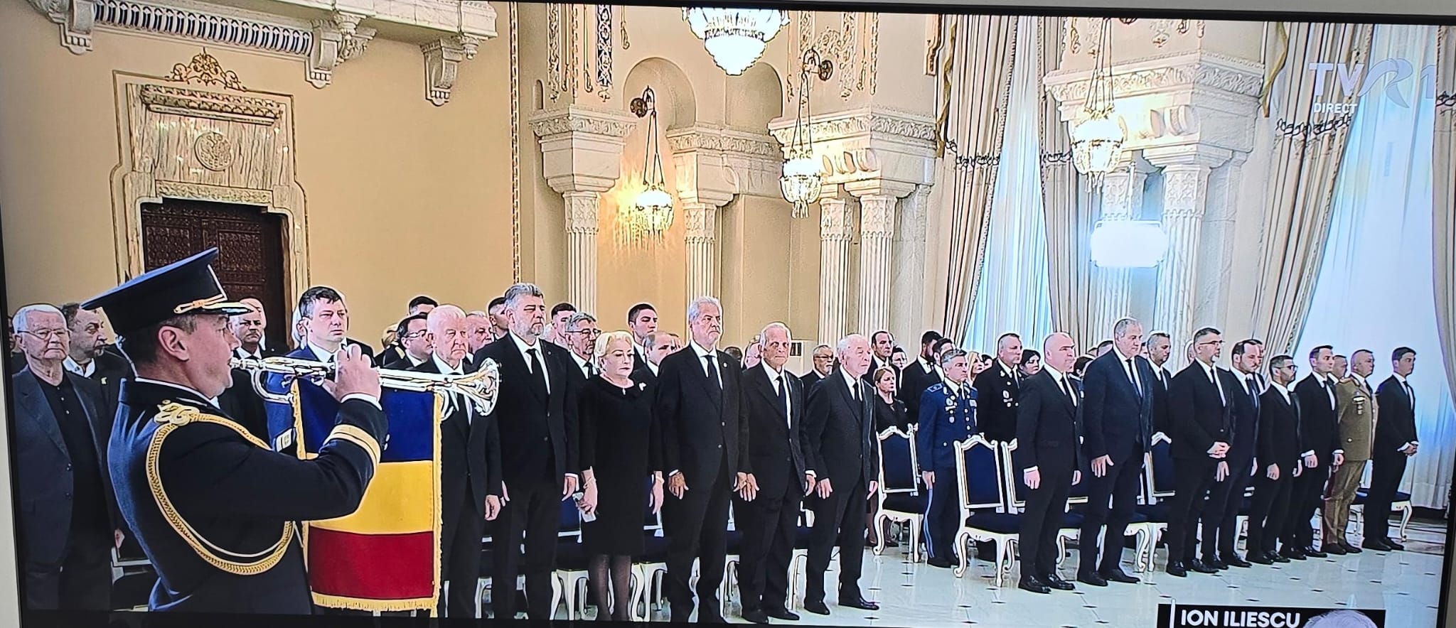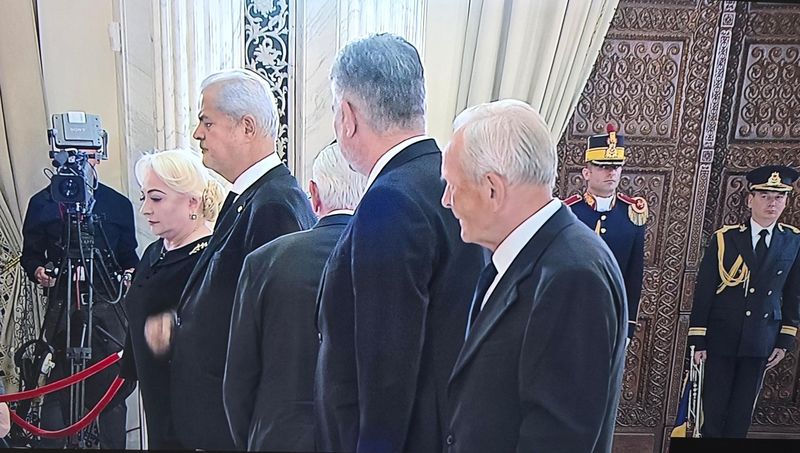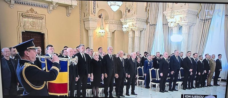 În Sala Unirii se mai află fostul premier Nicolae Văcăroiu și fostul ministru al Agriculturii, Petre Daea. Și aceștia participă la înmormântarea lui Ion Iliescu.