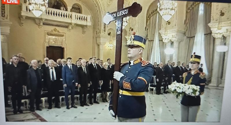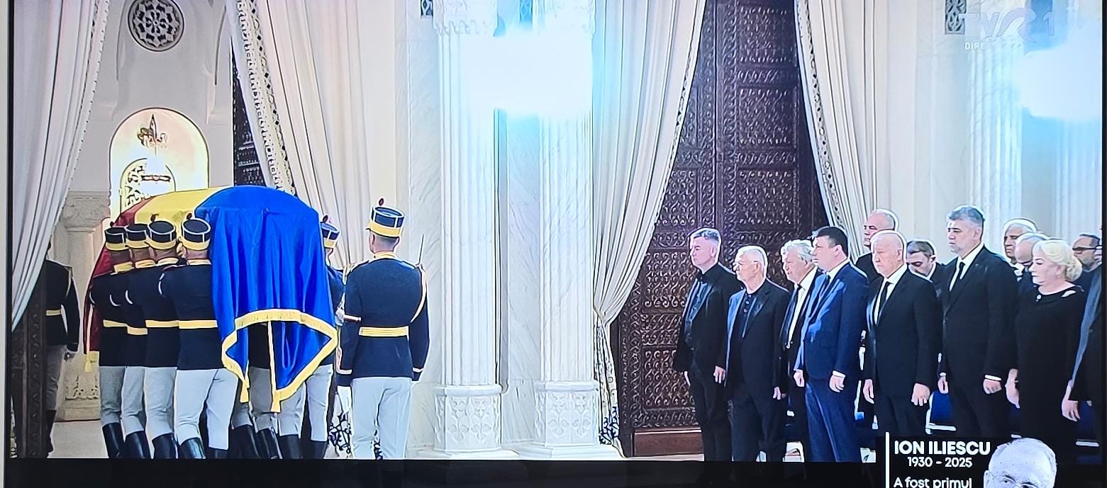 Sicriul în care se află trupul lui Ion Iliescu a fost depus în cursul zilei de miercuri pe catafalc, în Sala Unirii a Palatului Cotroceni. Este pentru prima dată când au loc ceremonii de stat pentru un fost președinte din perioada post-comunistă a României.