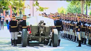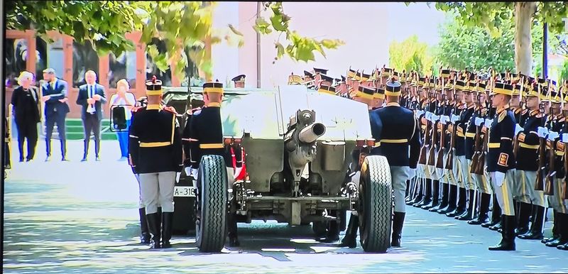 Se trag 21 de salve de tun la înmormântarea fostului președinte Ion Iliescu. Sicriul este dus spre locul de veci pe un afet de tun. Militarii Regimentului 30 Gardă „Mihai Viteazul” însoțesc sicriul. Muzica Militară a intonat Marşul funebru.