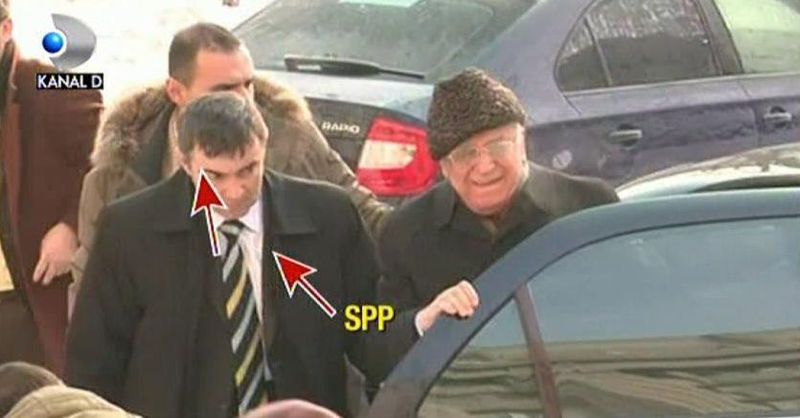La coborararea din masina, Iliescu a fost imediat inconjurat de Spp- istii veniti cu o alta masina, special pentru a-l pazi.