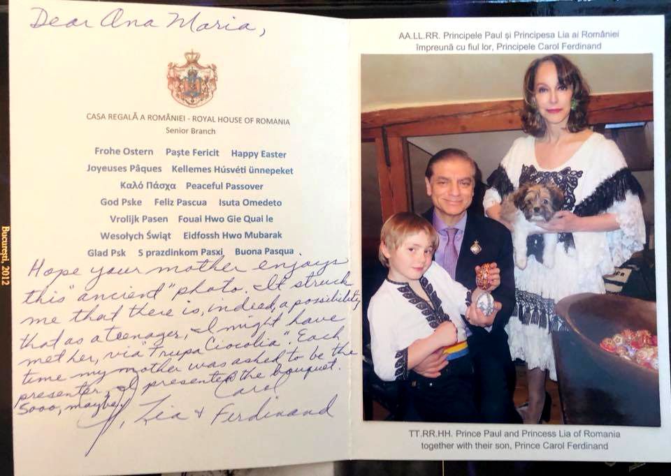 Ionela Prodan a primit o felicitare plina de emotie de la Printul Paul, sotia sa, Printesa Lia, si fiul lor, Carol Ferdinand.