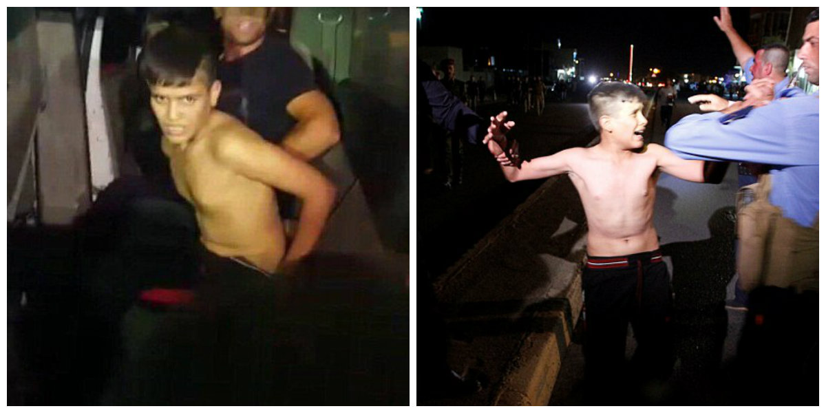 Baiatul, care purta un tricou in culorile echipei de fotbal FC Barcelona a izbuncit in plans in momentul in care a fost capturat de politistii din Kirkut, oras situat la nord de Bagdad.