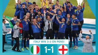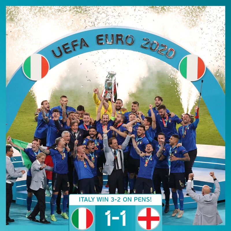 Italia a spulberat visul Angliei de a câștiga un titlu european după mai bine de 50 de ani de la impunerea la Campionatul Mondial, reușind să câștige finala Euro 2020 de pe stadionul Wembley, cu 3-2 după loviturile de la 11 metri. După primele 120 de minute, scorul a fost egal 1-1.