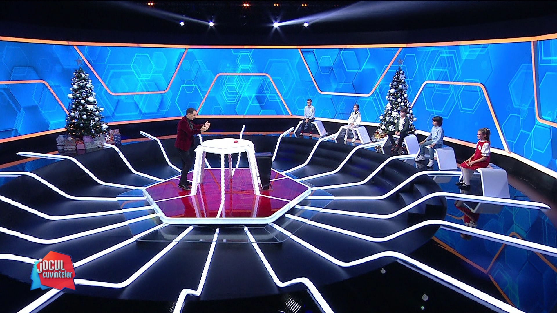 În platoul împodobit pentru cea mai frumoasă Sărbătoare din An, Crăciunul, cei cinci micuți concurenți vor demonstra că perspicacitatea și cunoștințele de vocabular fac echipă bună cu distracția, iar în această ediție de colecție a jocului minții Moșul îi va răsplăti pe copilași