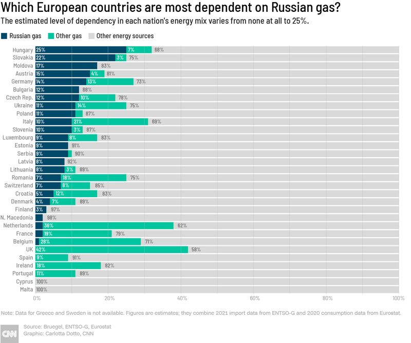 Țările UE au mult mai multă expunere la energia rusă decât SUA, iar state ca Germania sau Ungaria au anunțat deja că se opun embargo-ului impus gazelor și petrolului rusesc.