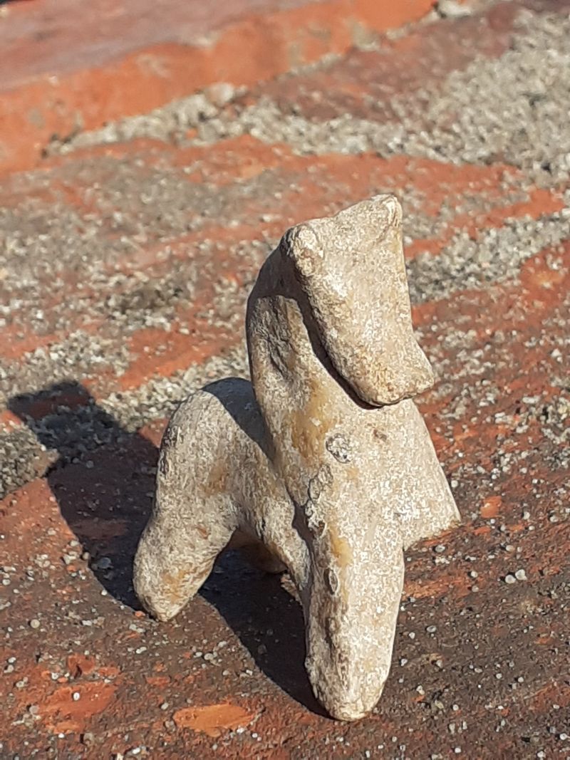 În ultima zi a săpăturilor, cercetătorii au dezgropat o figurină minusculă. Era un căluț de jucărie sau o marionetă, având în vedere gaura mică de pe partea inferioară.