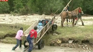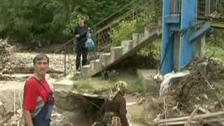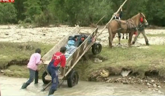 Ajutoarele au ajuns cu greu la cei de aici, pentru ca din localitatea zdruncinata de viitura doar casele au mai ramas in picioare.