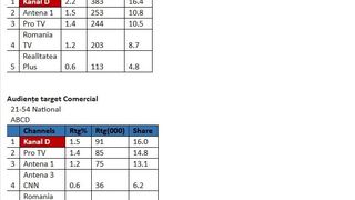 În intervalul difuzarii buletinului informativ Știrile Kanal D, 12:00-13:00, Kanal D a fost prima opțiune a telespectatorilor, înregistrând 2,2% puncte de rating și 16,4% cotă de piață, în rândul publicului din întreaga țară, targetul Național, și 1,5% rating și 16,0% cotă de piață, pe targetul Comercial (21-54 Național ABCD).