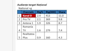 O medie de 413.000 de telespectatori au urmărit ieri Kanal D în intervalul sus menționat, minutul de aur fiind înregistrat la 14:37, când 487.000 de fani ai emisiunii urmăreau reportajele inedite marca “Asta-i România!”.