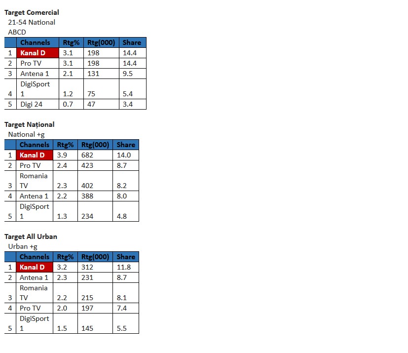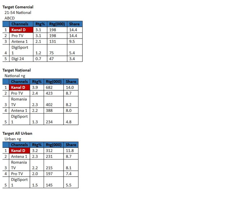 Astfel, prima parte celebrului show matrimonial ”Casa Iubirii” a înregistrat 3,1% puncte de rating și 14,4% cotă de piață, în rândul publicului Comercial (21-54 Nat ABCD), 3,9% rating și 14,0% cotă de piață, în rândul publicului din întreaga țară (target Național), și 3,2% puncte de rating și 11,8% cotă de piață, în rândul publicului de la orașe (All Urban), Kanal D poziționându-se,