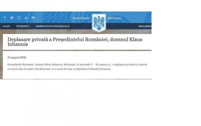 Administratia Prezidentiala a precizat, prin intermediul unui comunicat de presa, ca presedintele Klaus Iohannis urmeaza sa faca o vizita privata in Germania, acolo unde locuiesc parintii sai.