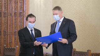 La începutul întrevederii, Ludovic Orban i-a înmânat preşedintelui Iohannis protocolul coaliţiei: