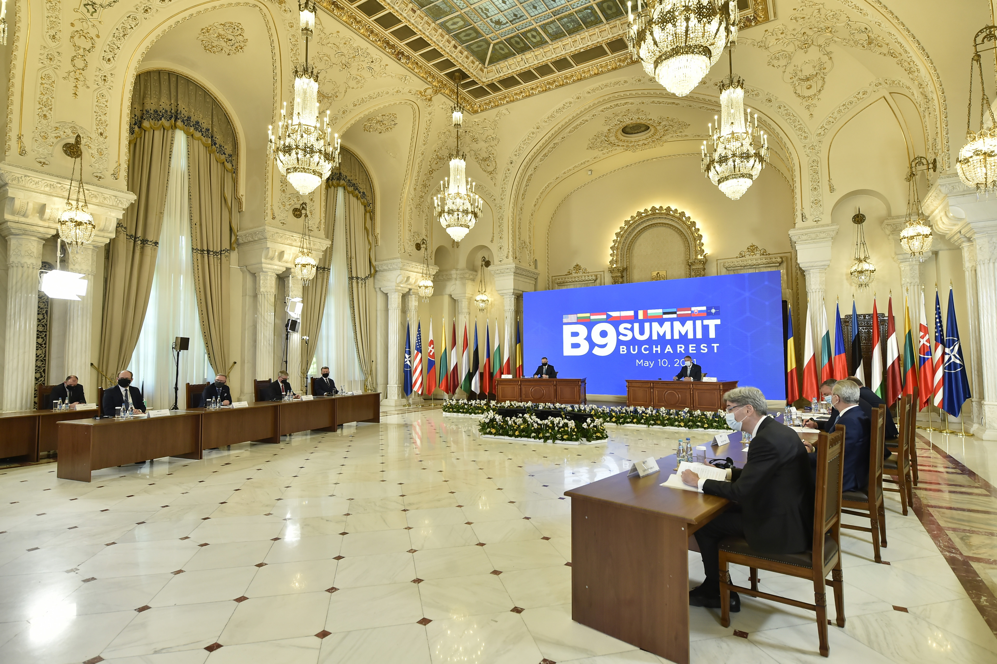 Summit-ul B9 este organizat la iniţiativa preşedintelui Iohannis şi se desfăşoară cu prezenţa la Bucureşti a preşedintelui polonez, aflat în vizită oficială în România, şi cu participarea prin videoconferinţă a celorlalţi şefi de state din Formatul Bucureşti, precum şi a Secretarului General al NATO, Jens Stoltenberg.
