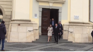 Soţii Iohannis au participat, duminică, la slujba de la ora 10.00 de la Biserica Romano-Catolică "Sfânta Treime" din Sibiu.