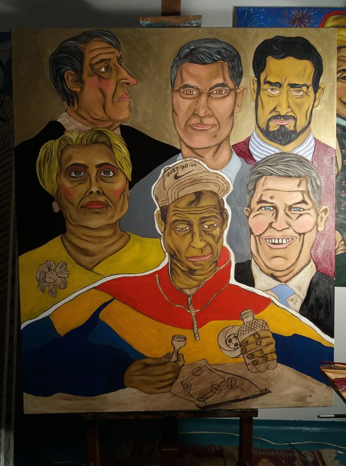 Klaus Iohannis şi Viorica Dăncilă au fost pictaţi de Paul Hitter, unul din cei mai cunoscuţi artişti plastici contemporani, devenit cunoscut datorită lucrărilor sale în culori ţipătoare, în care se amestecă kitch-ul cu pictura naivă şi ironia.( vezi cum a cheltuit Alexandru Cumpănaşu 300.000 de euro în campania electorală)