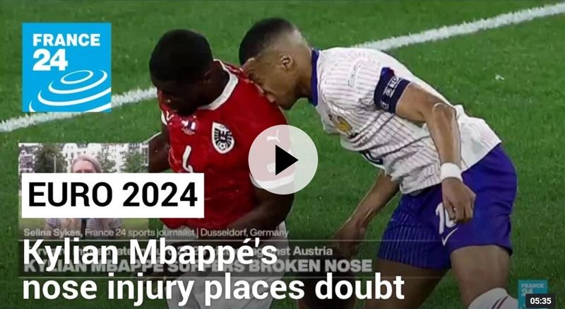 Accidentarea gravă la nas a lui Kylian Mbappé pune la îndoială prezența sa în continuare la Euro 2024, informează si France 24.
