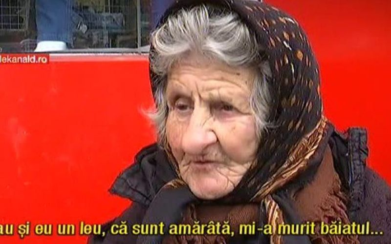 La 84 de ani, mulţi bunici prefera stau acasă şi aşteaptă să le treacă pragul copiii şi nepoţii. Pe mamaie Leontina viaţa a îngenunchiat-o însă de tot! N-are de ales, stă ore în şir în frig şi aşteaptă mila semenilor. Nu poate trăi dintr-o pensie de 120 de lei pe lună. ##VIDEO34413##
