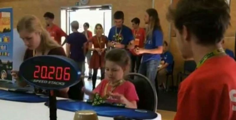 La doar sase anisori, Nicoleta pare sa faca magie cu celebrul cub Rubik. Imaginile sunt graitoare