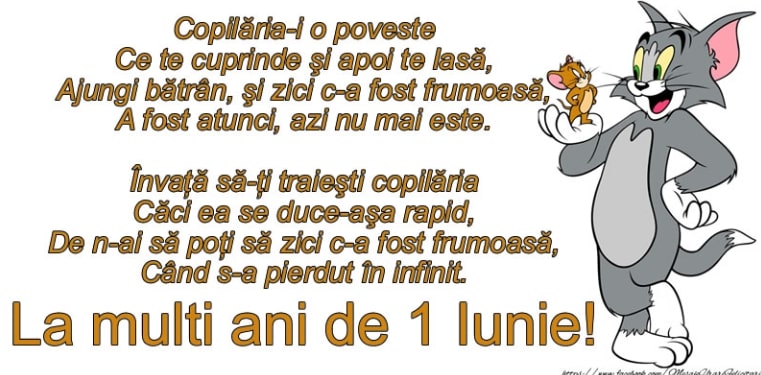La mulți ani! Ai devenit mai inteligent cu încă un an! Ai început să sari în sus, ai început să fugi departe. Te uiți cu atenție și îți cauți jucăriile. Ai început să mănânci mai bine, deci – ai crescut mare! Azi este sărbătoarea ta – la mulți ani, puiul meu!