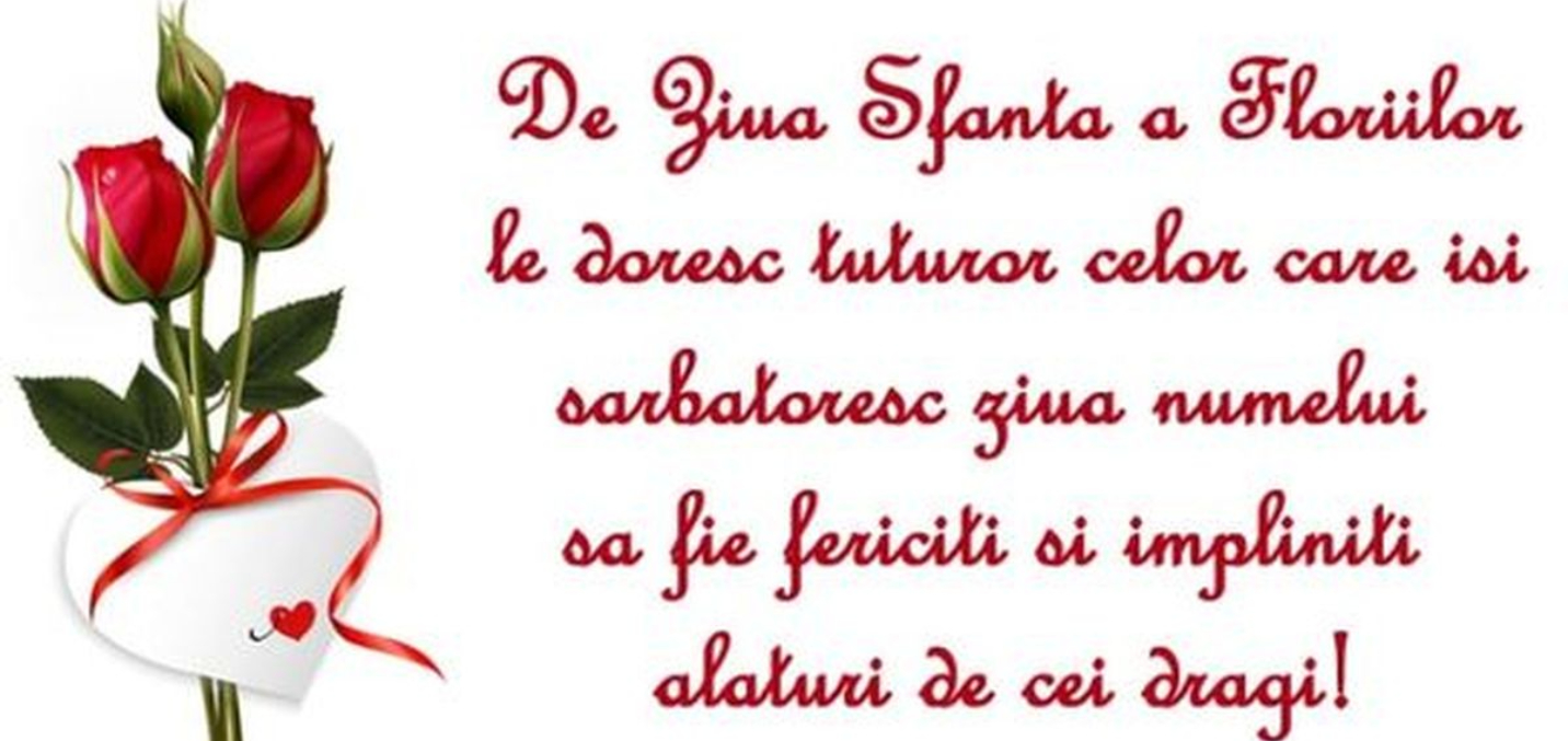 „De Florii, îți urez un sincer La mulți ani! Fie ca magia acestei sărbători și a numelui tău minunat, de floare, să îți ofere puterea necesară de a trece prin orice în viață! Să ai parte de raze de soare, bucurie și armonie și momente de neuitat!”