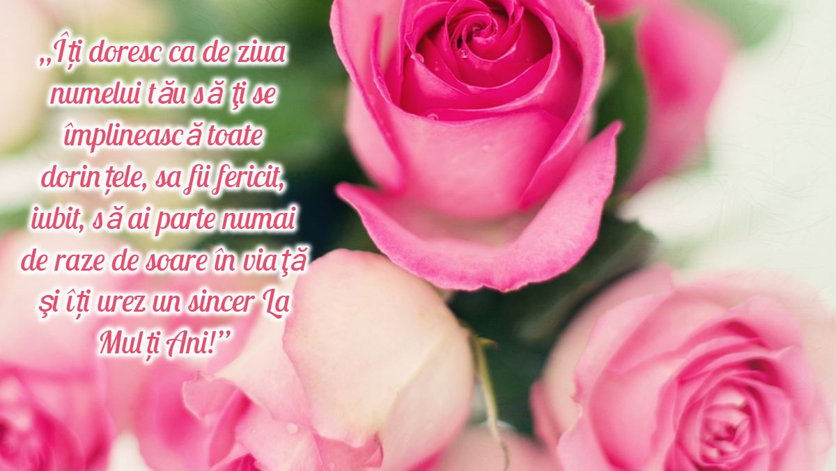„De ziua numelui tău, îți doresc tot binele din lume, noroc, fericire si sănătate și să ți se îndeplinească toate dorințele pe care o să ți le pui. La mulți ani!”