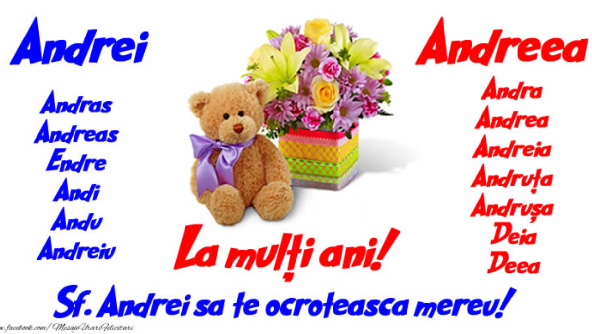„În această zi specială îți doresc tot binele din lume. Sfântul Andrei, al cărui nume îl porți, să aibă grijă de tine și de sufletul tău, iar tu să fii mereu zâmbitor și iubit! La mulți ani!”