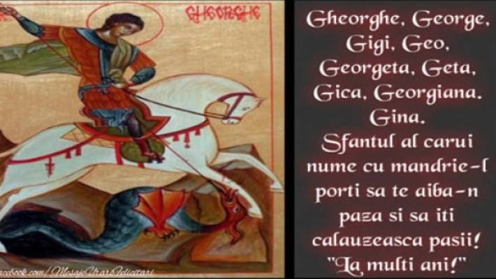 Nu mai puţin de 900.000 de români, care poartă numele de Gheorghe, Gheorghiţă, George sau Georgeta, Georgiana şi Geta, precum şi alte nume derivate îşi serbează ziua numelui în această dată.