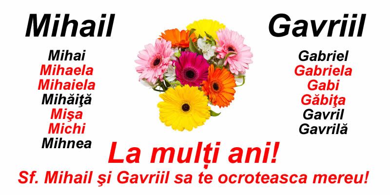 1. Arhanghelul Mihail, înger al adevărului şi al dreptăţii, să-ţi stea alături mereu, la bine şi la greu, să-ţi lumineze calea şi să-ţi arate destinul. La mulţi ani!
