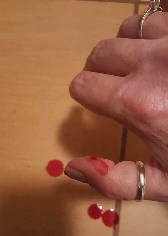 “Eu, fata buna cum ma stiti, am prins lighioana cu gandul sa o eliberez afara, deci sa o salvez, dar lighioana m-a muscat de deget. Atat de tare incat mi-am auzit carnea trosnind. Nici macar dupa ce l-am scos cu tot cu mana pe pervaz, nu m-a eliberat. A trebuit sa ii dau una in cap. Chitaia ca din gura de şarpe, dar stransoarea n-o slabea (…) Am dezinfectat ranile (m-a muscat de ambele maini), dar imi zvacnesc si s-au umflat”, le-a spus Corina Gabriela prietenilor.