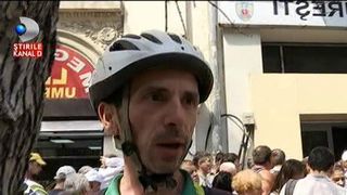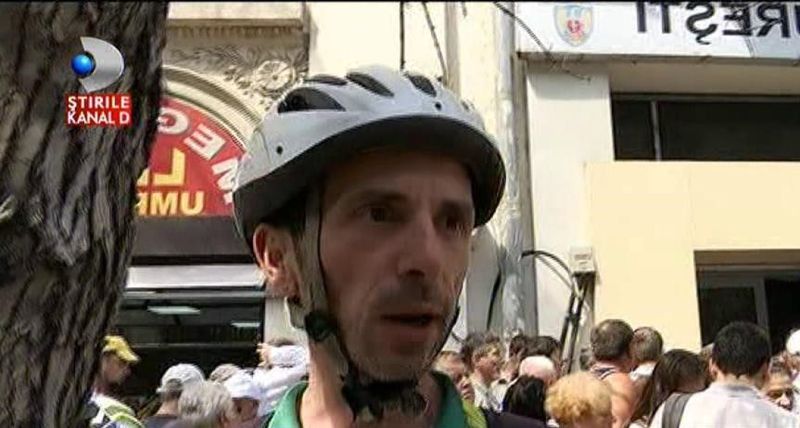 S-au montat garduri ca la proteste in fata centrului unde primaria capitalei da tichete cadou pentru biciclete. Pe doua strazi pe intindea coada. Iar unde n-a fost loc pe trotuar, oamenii s-au pus in drum. S-au produs si accidente.