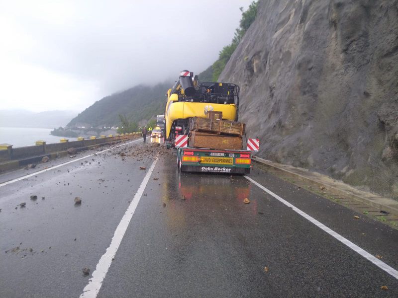 Potrivit primelor informații, precipitațiile puternice din ultimele ore au condus la desprinderea pietrelor de pe versanți.
