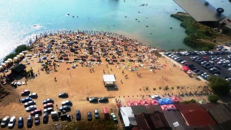 1 din 3 | Lacul Ghioroc din Arad a devenit "litoralul Vestului". Mii de oameni au inceput sa ia cu asalt plaja cu nisip fin si palmieri!