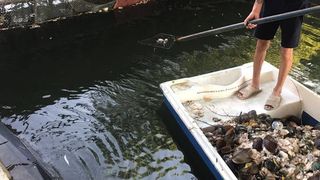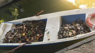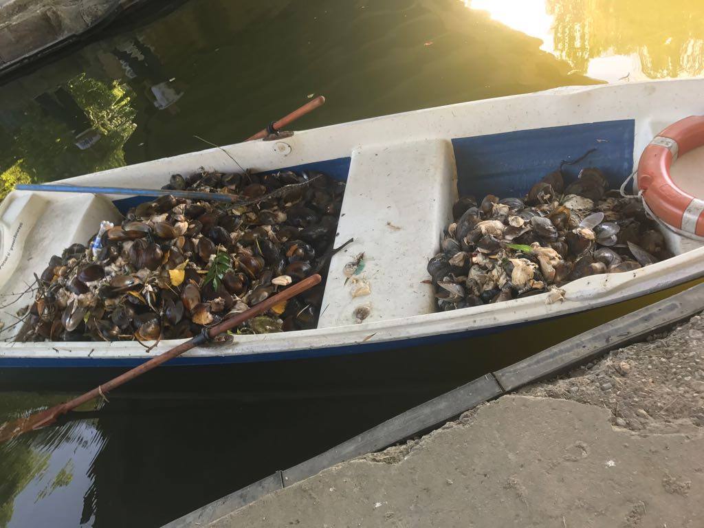 In cele 3 zile s-au strans aproximativ 4.6 tone de scoici moarte de pe suprafata lacului.