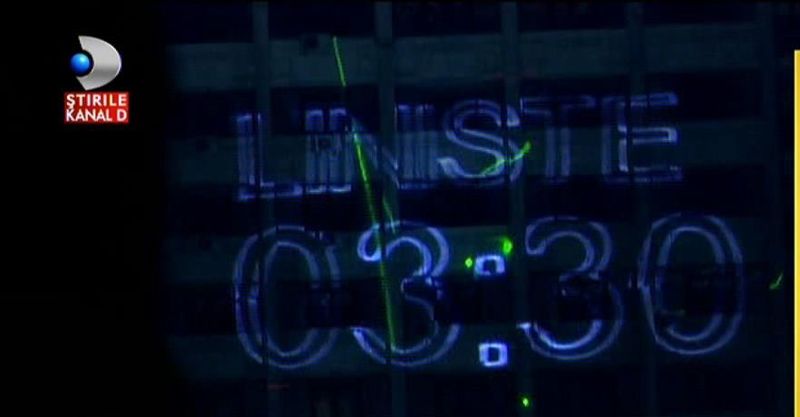 Nici uriasele proiectii de pe blocurile din piata Victoriei, dar si de pe cladirea Guvernului, nu ar fi intamplatoare. Cel putin asta lasa sa se inteleaga jurnalistul Ion Cristoiu, care are o dilema: "Cum, de unde au lasere. Cine le-a dat lasere?