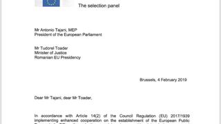 Rezultatul selecţiei a fost transmis Consiliului Uniunii Europene şi Parlamentului European, forurile care vor lua decizia numirii procurorului şef al Parchetului European.