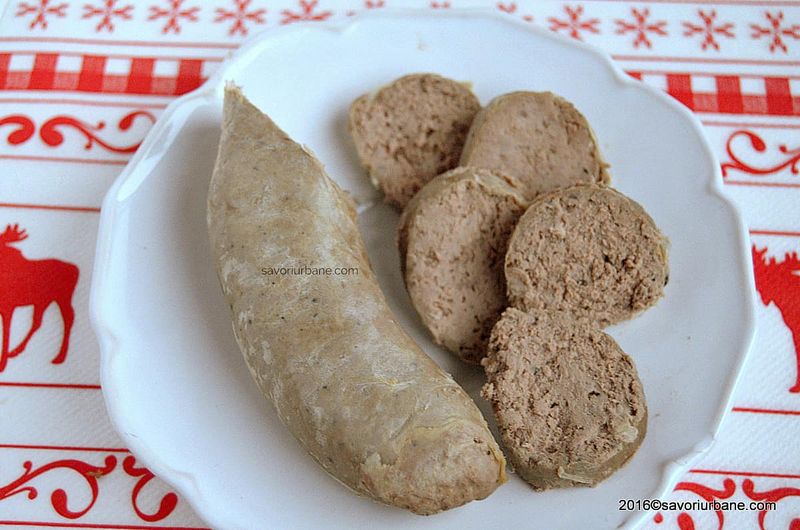 Se amesteca bine si se lasa compozitia la rece pentru doua ore. Intestinele, spalate bine, se ataseaza la masina de tocat si se umplu.