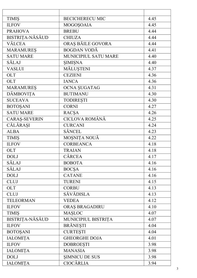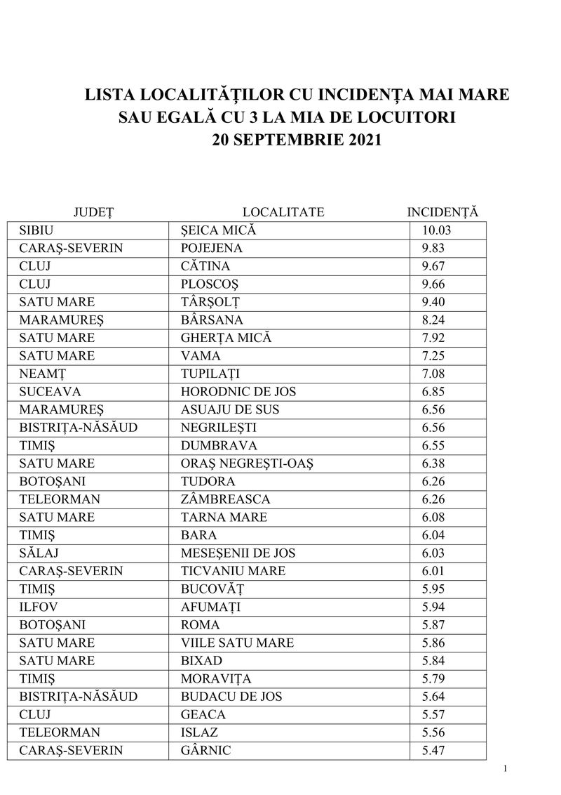 3 din 7 | Lista celor 224 de localități în care incidența este mai mare de 3 la mie. Recordul de incidență, atins într-o localitate din Sibiu