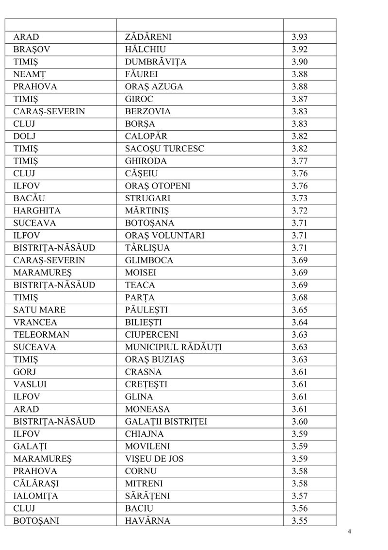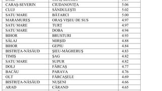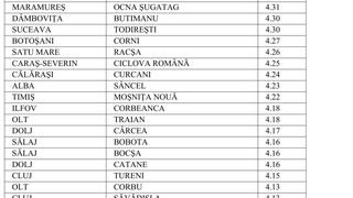 4 din 7 | Lista celor 224 de localități în care incidența este mai mare de 3 la mie. Recordul de incidență, atins într-o localitate din Sibiu