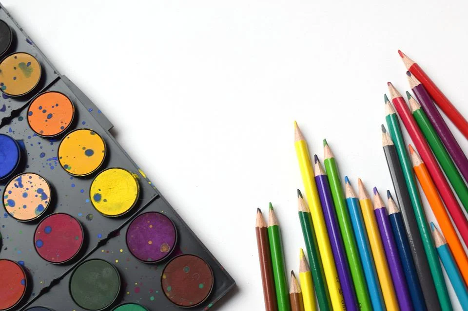 - bloc de desen, set de acuarele, pahar de plastic pentru apă, material textil pentru șters;