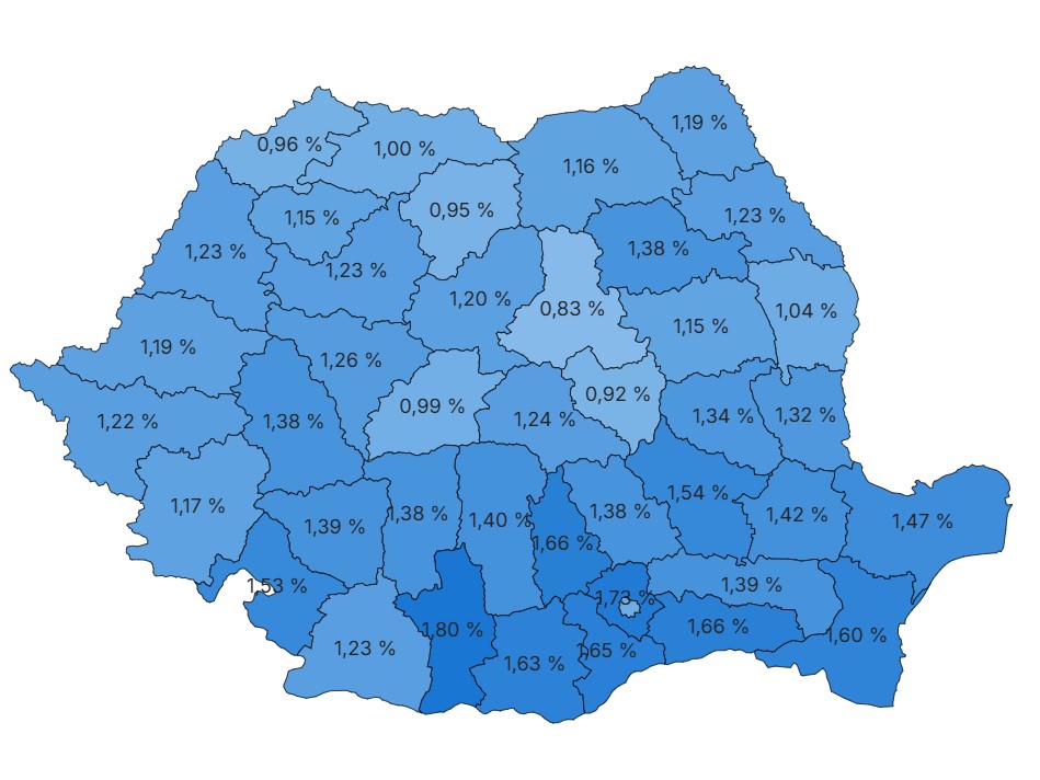 În judeţul Ilfov s-a înregistrat cea mai mare prezenţă la vot, respectiv peste 62%, în timp ce în Vasliu s-au prezentat cei mai puţini dintre cei înscrişi pe listele electorale.