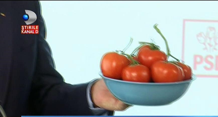"Batea campii cineva despre teleormanizare, am adus niste rosii din teleorman, astea sunt, sunt luate din piata de dimineata", spune Dragnea.