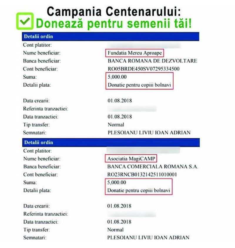 Am donat 5.000 de lei in contul Fundatiei umanitare Mereu Aproape si 5.000 de lei in contul Fundatiei umanitare MagiCamp.