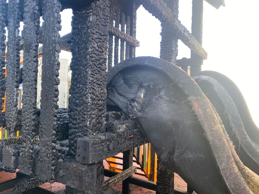 Locul de joacă a fost incendiat în noaptea de joi spre vineri, fapta fiind considerată "un act de un vandalism de o gravitate rară".
