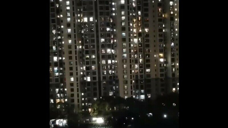 În imaginile video se poate observa cum mii de oameni urlă noaptea de la geamurile caselor lor, după o săptămână de carantină totală impusă de autorități în metropola cu 26 de milioane de oameni, din cauza unor noi cazuri de