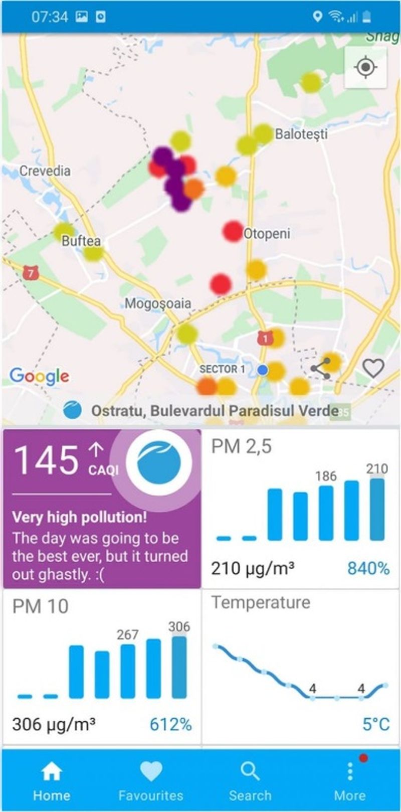 ”Buna dimineaţa, am deschis să aerisesc casa acum 5 minute. Nu poti respira deloc”, scrie un bărbat din zona Odăi.