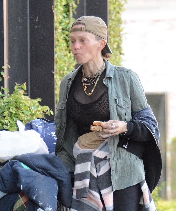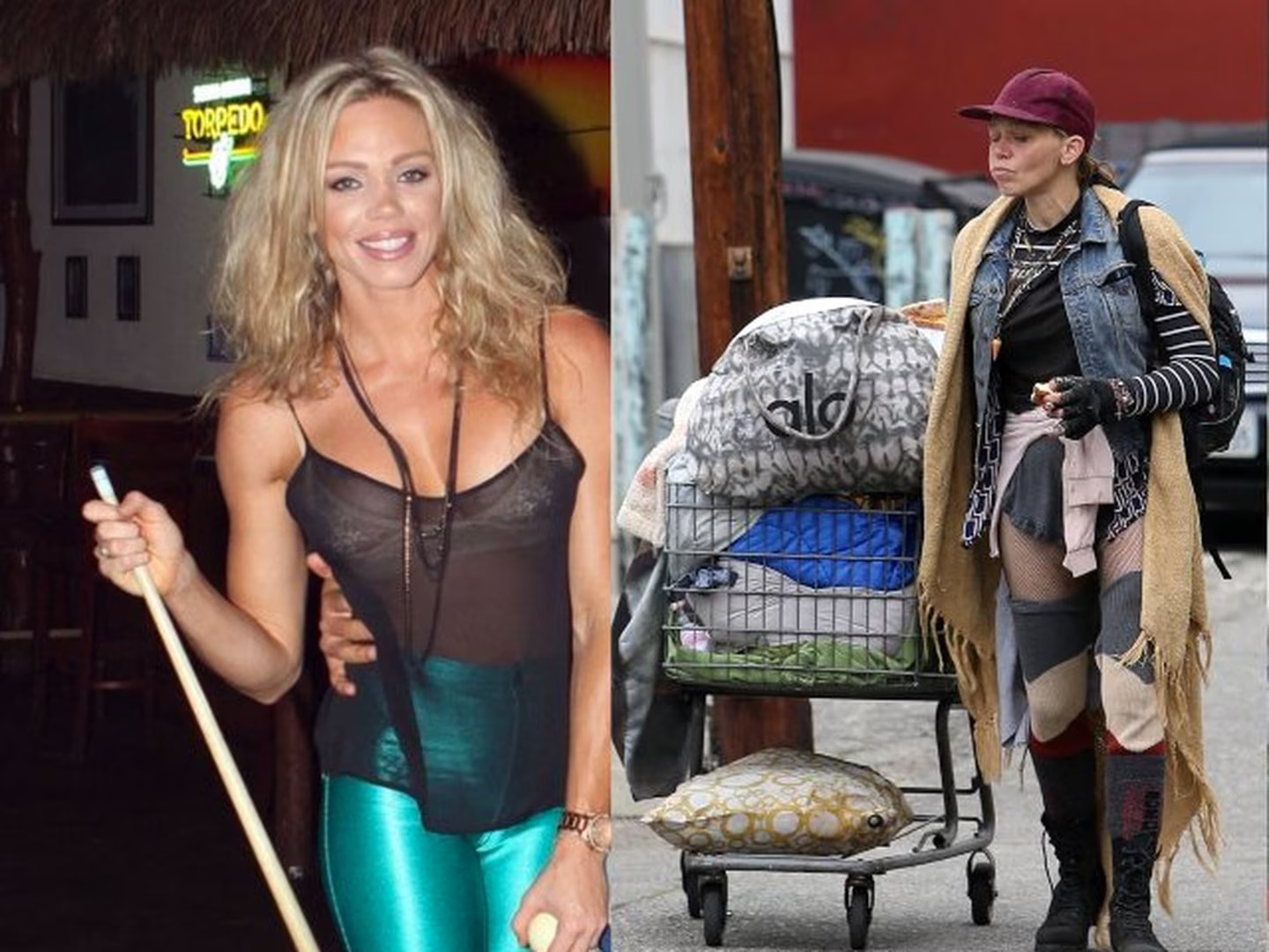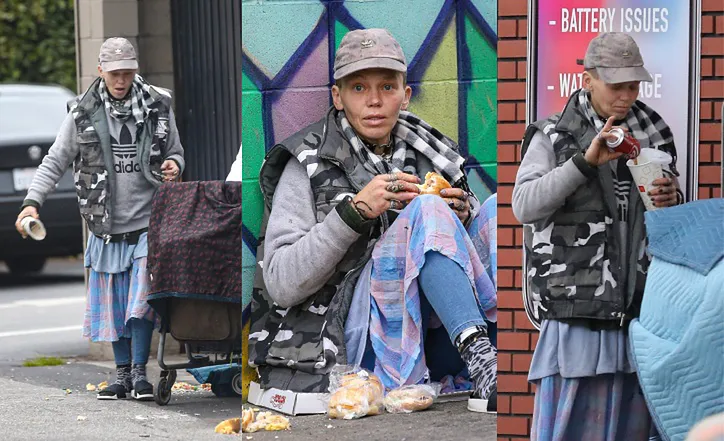 Blonda strălucitoare din trecut era îmbrăcată acum în zdrențe și arăta confuză și slăbită în timp ce împingea un cărucior de cumpărături pe străzile din spate.