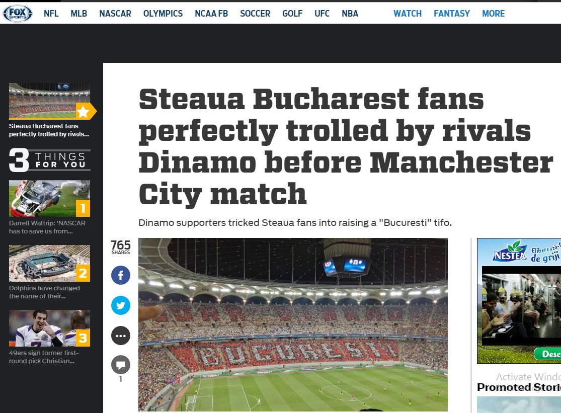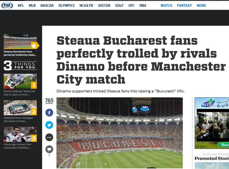 Americanii de la Fox Sports au scris:" Fanii Stelei au fost "trollaţi" de rivalii de la Dinamo înaintea meciului cu Manchester City".